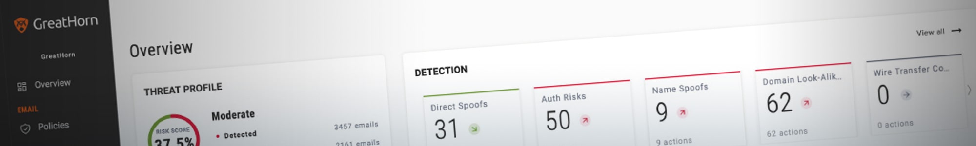 - GreatHorn takes a universal approach to policy definition, providing a single policy creation screen where policies can be defined to protect users against an email attack in all its dimensions, including URLs, sender domains and message content.